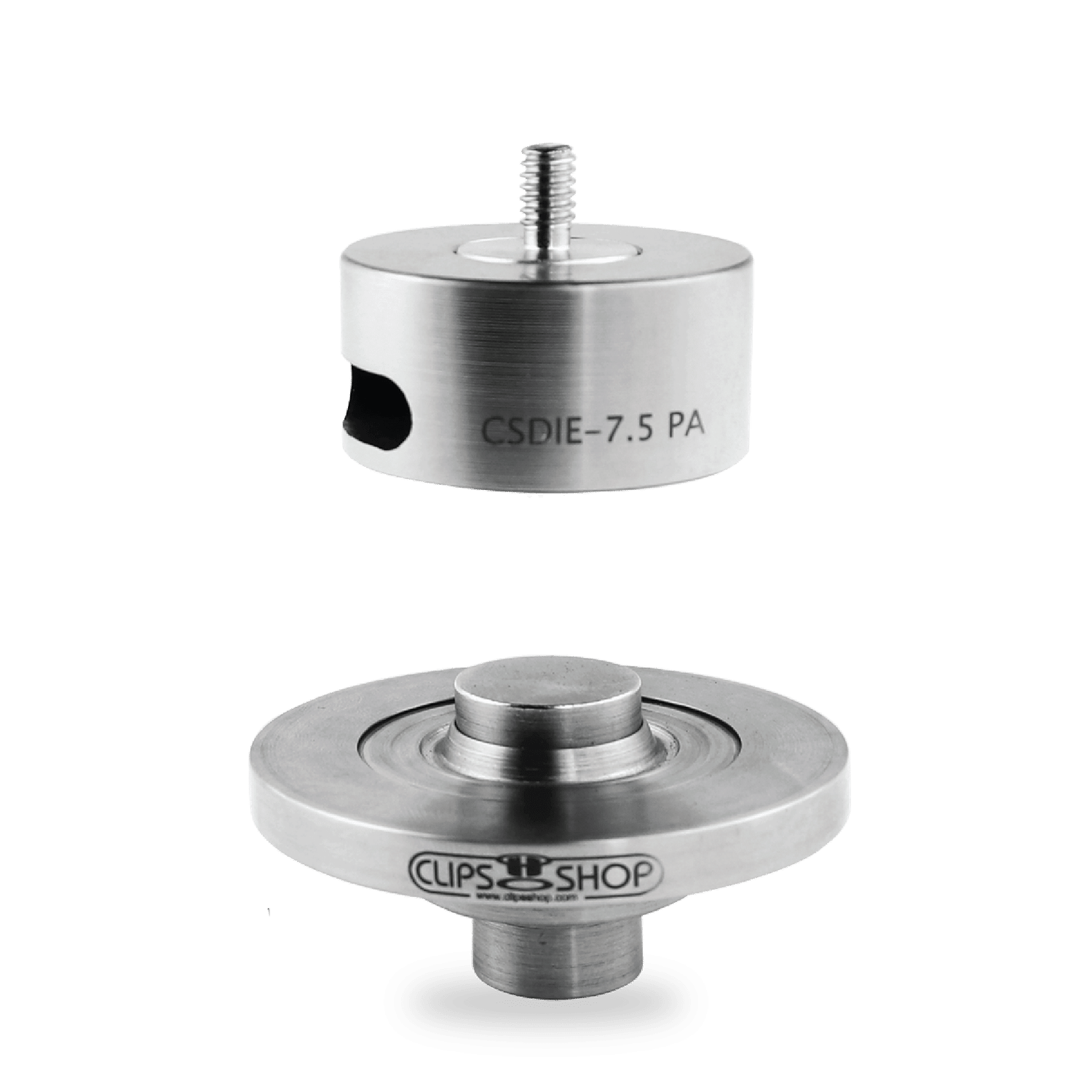 ClipsShop™’s Two-Step-Die is designed for piercing holes and setting grommets in 2 steps using a single die. As a result, this is a time-saving and cost-efficient alternative to the traditional process where separate cutting and attaching dies are used. No more need to have two separate dies and the die changing process to attach a grommet.