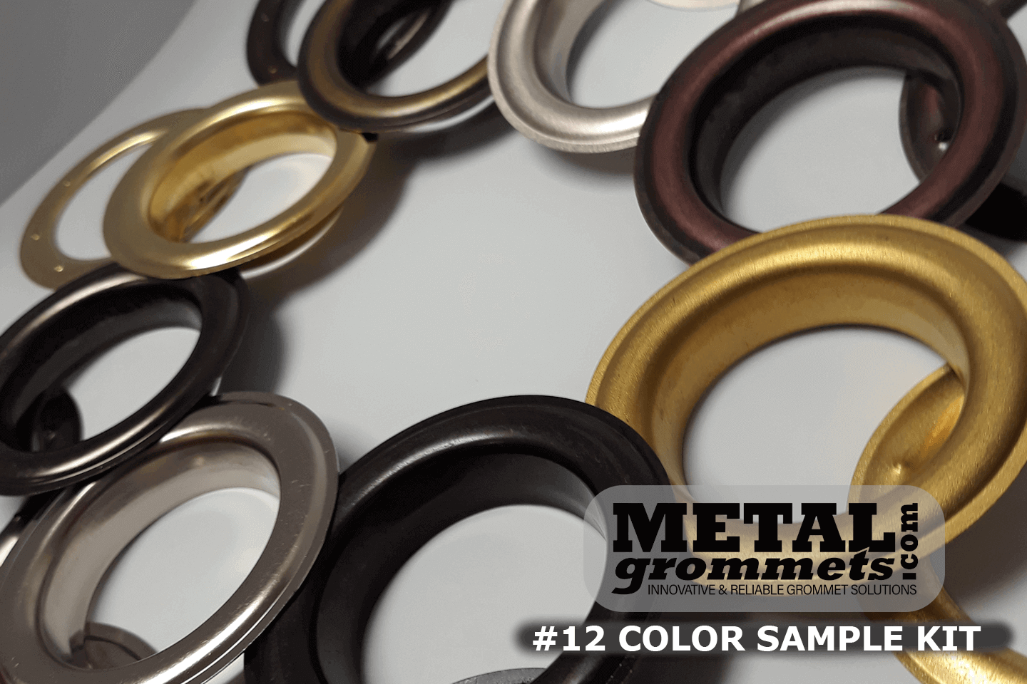 *** FREE SHIPPING *** Our solid brass #12 size 1 1/2'' ID 40mm tarpaulin curtain eyelets drapery grommets are available in a variety of colors and finishes. This sample designer planning and color presentation kit is a great aid in determining exactly which style suits your project or your client's project best. Included in the 40 mm 1 1/2" hole size color kit is a grommet & washer in all 8 available finishes: Brass, Satin Brass, Nickel, Satin Nickel, Black Oxide, Antique Brass, Gun Metal, and Copper Oxide. Use it to plan your project, present options to your clients, etc. Isn't this option better than purchasing a large quantity of a grommet you aren't sure you want?