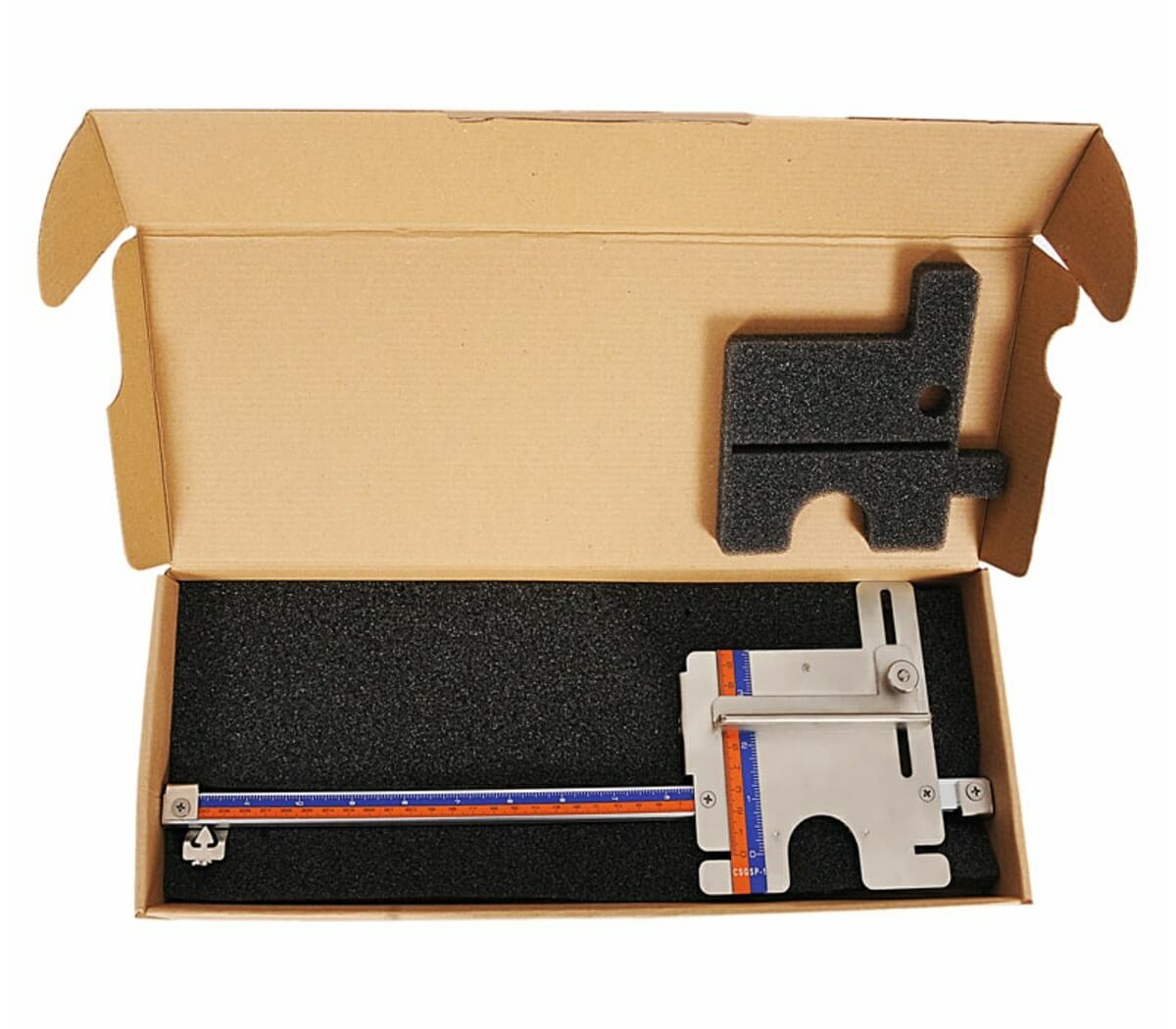 Simple to install and easy to use, this durable steel alignment fixture mounts securely to the base of the CSTEP-2 bench press & CS-TIDY-41 / 51 pneumatic grommet machine and is fully adjustable.
