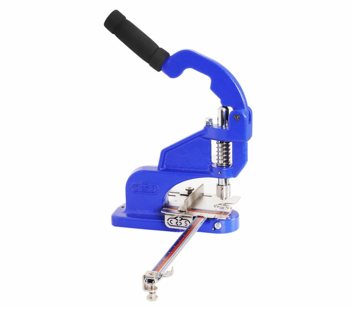 Featuring laser-etched inch and metric markings for ease of adjustment, the GrommetSniper requires no special tools and once set can be locked into place using finger wing-nuts. See the CSTEP-2 hand press and the CS-TIDY-41 pneumatic grommet attacher here! Buy grommets or complete package deals including a press, attaching dies, and grommets.