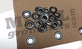 ClipsShop brand solid brass self-piercing chemical black color grommets are designed to fit ClipsShop stainless steel setting dies. If you plan to use our grommets with a different brand of grommet-attaching machine, you do so at your own risk. We suggest you request samples for testing before making a purchase. Open bags of grommets may NOT be returned.