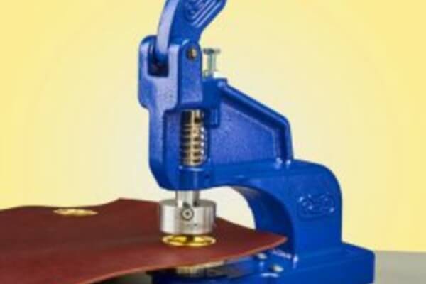 For the 1st step, place a washer on the lower die, insert your material, and cut the hole through the fabric. Next, without moving the position of the substrate, place the grommet on the lower die directly over the hole. Make a second cycle or impression with your grommet machine press and set the grommet through the hole.