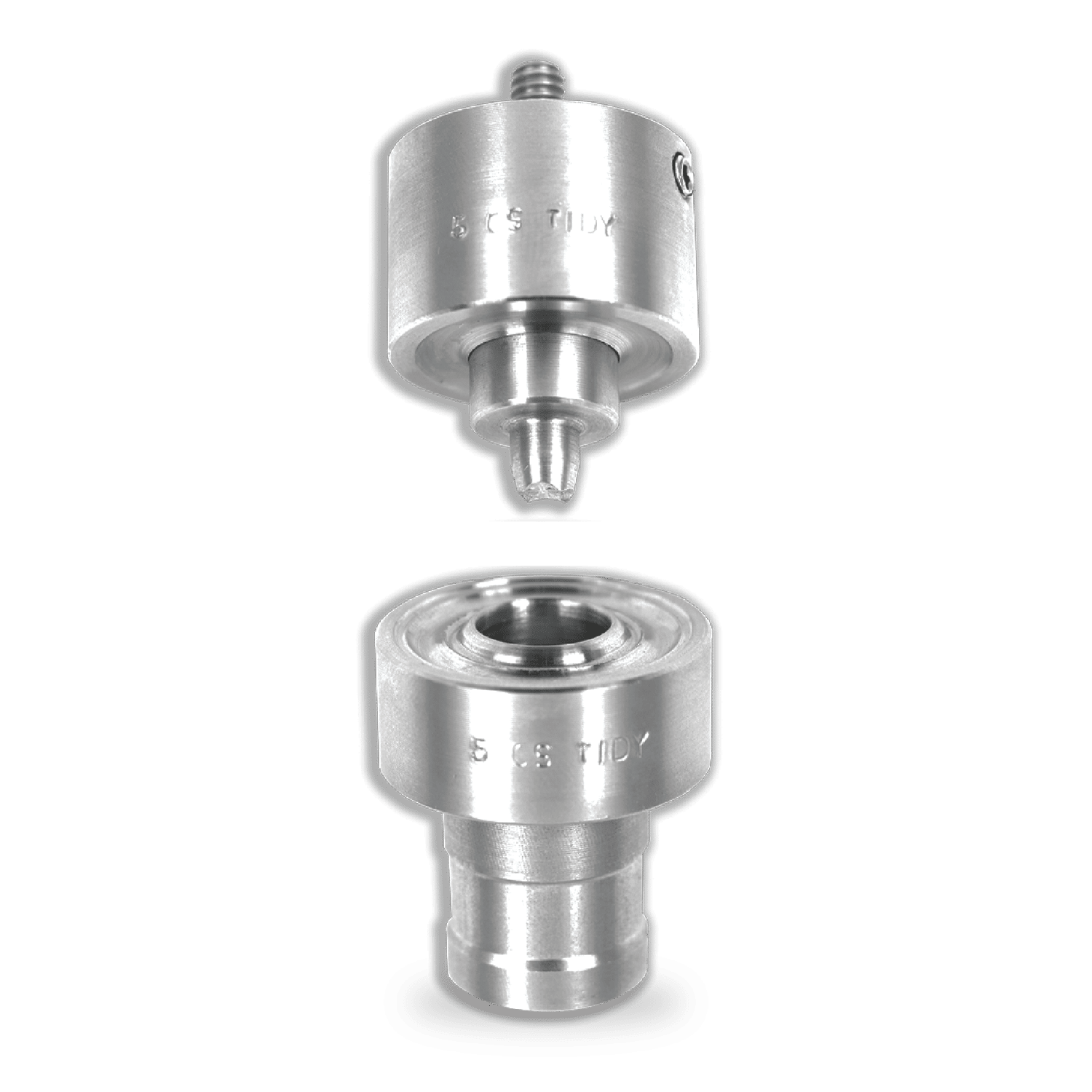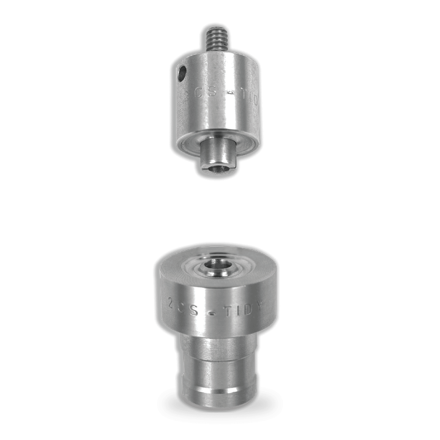 We designed industry-first Self-cleaning dies to be used with ClipsShop TIDY series pneumatic machines. Functioning like Self-Piercing dies, these new concept dies also allow the scrap slug to fall neatly from the hole on the lower die into the collection drawer of TIDY series machines and keep your working place tidy. No more hassles to clean the slugs with Self-cleaning dies.