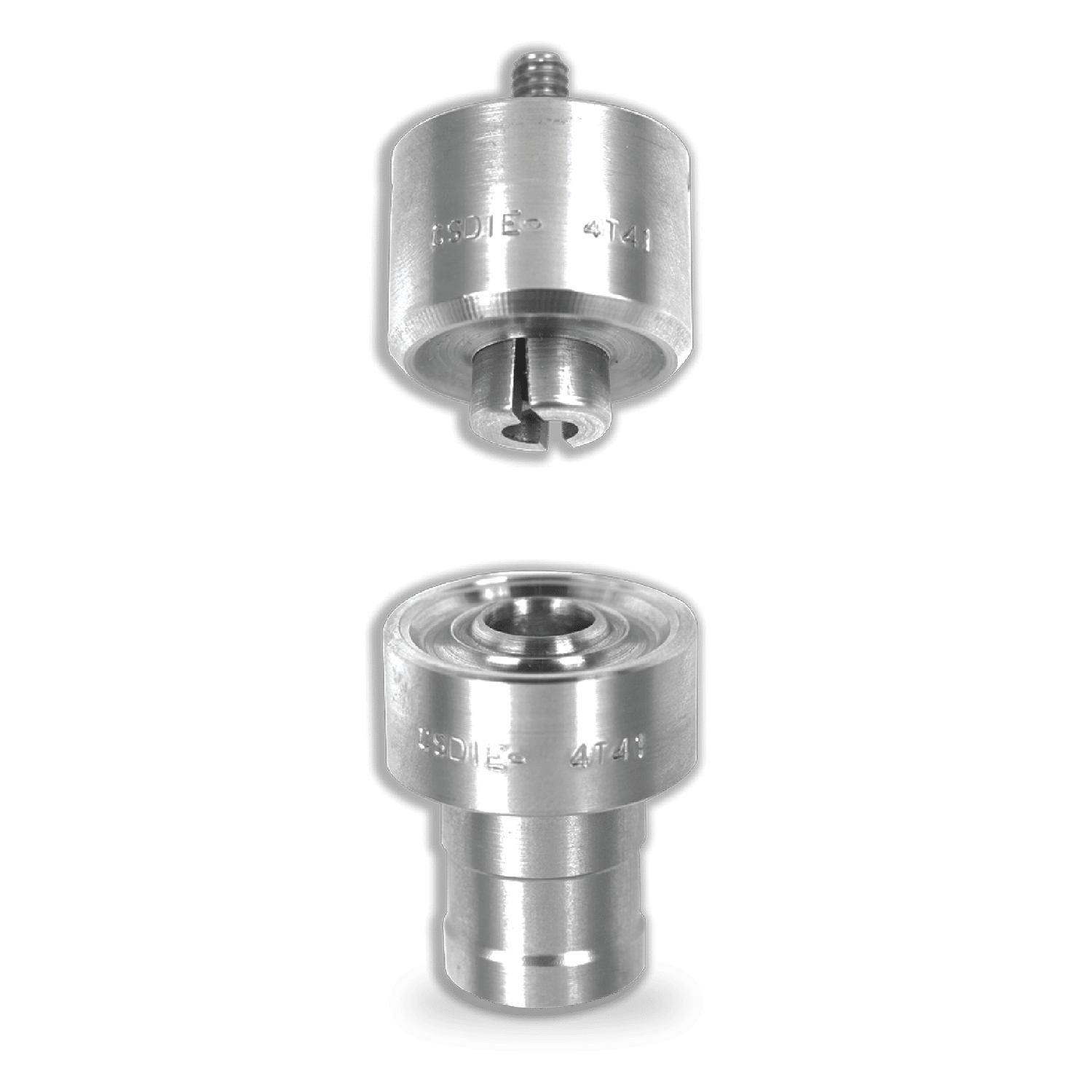 Patent-pending self-cleaning setting dies used to attach ClipsShop self-piercing metal grommets & washers.
