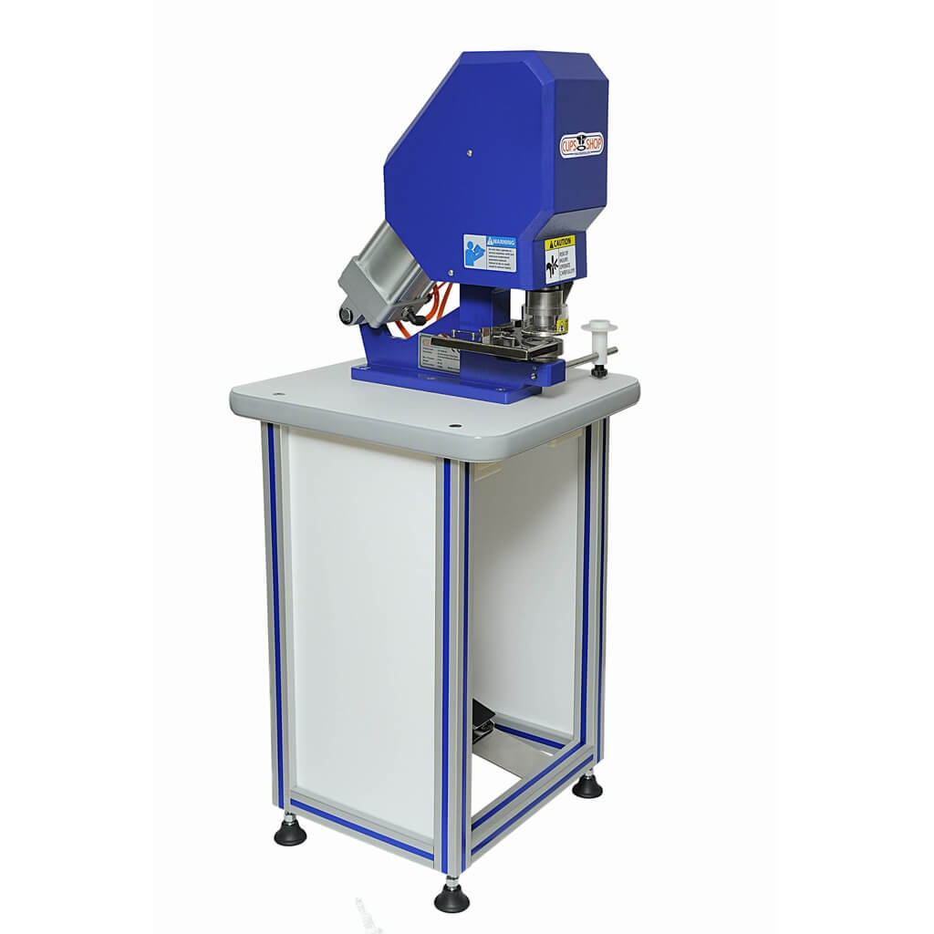 - Easily interchangeable tooling enables various eyelet sizes to be applied with a single machine