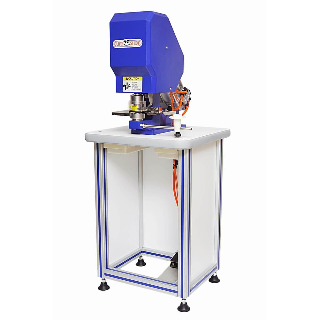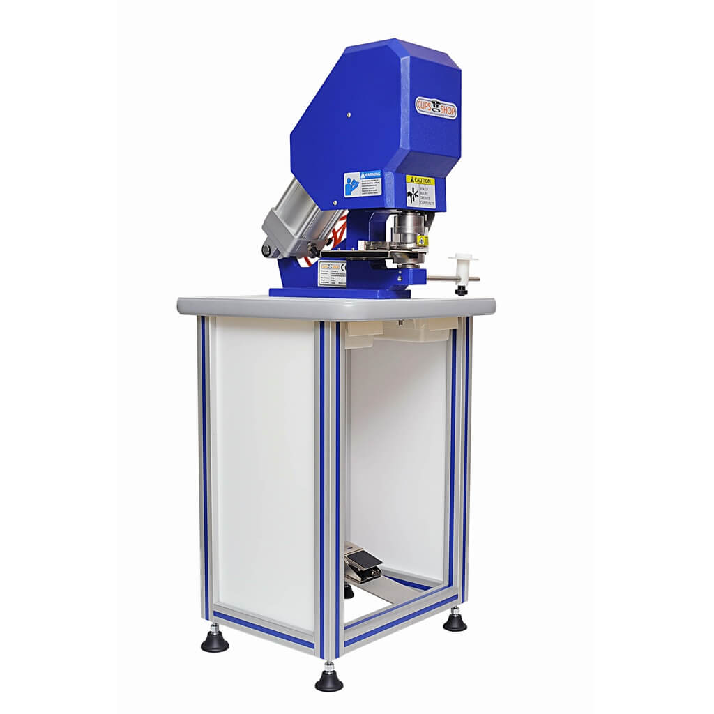 The CSDAM-03 is a state-of-the-art pneumatic machine specifically designed for punching a hole in a broad range of industrial fabrics and attaching ClipsShop grommets/eyelets and washers, all in a single cycle. This machine is especially suitable for attaching large-size eyelets such as #12 (40 mm hole size) to speed up the eyelet application process and increase efficiency.